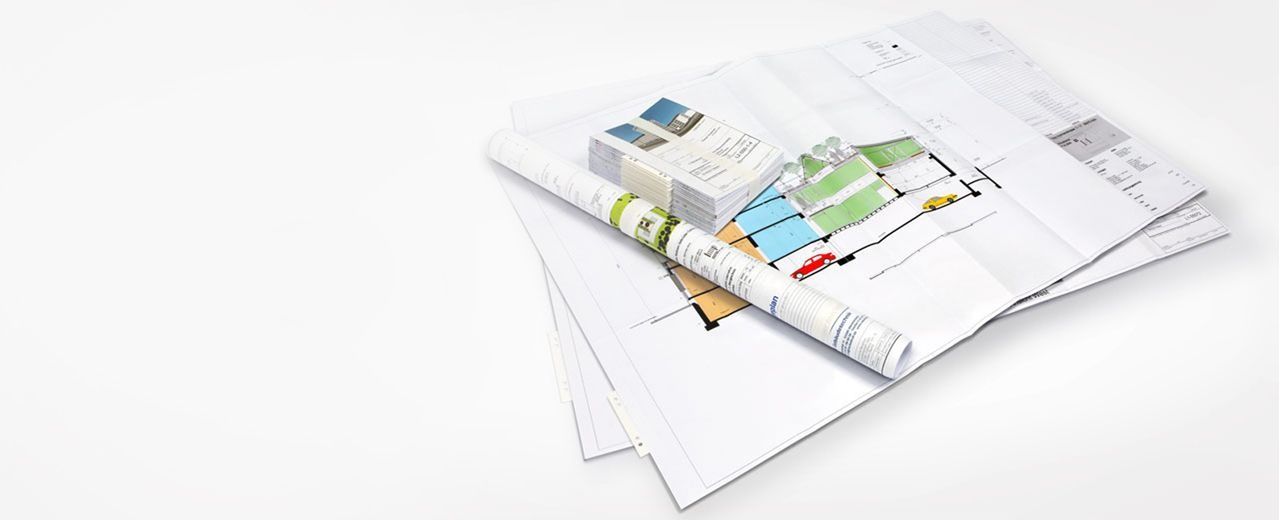 Wir plotten Ihre Pläne in Schwarzweiß oder Farbe in allen Größen bis 1,50 m Rollenbreite. Zur weiteren Verarbeitung schneiden und falten wir Ihre Pläne und versehen sie mit einem Abheftstreifen. Ganz nach Ihren Wünschen.