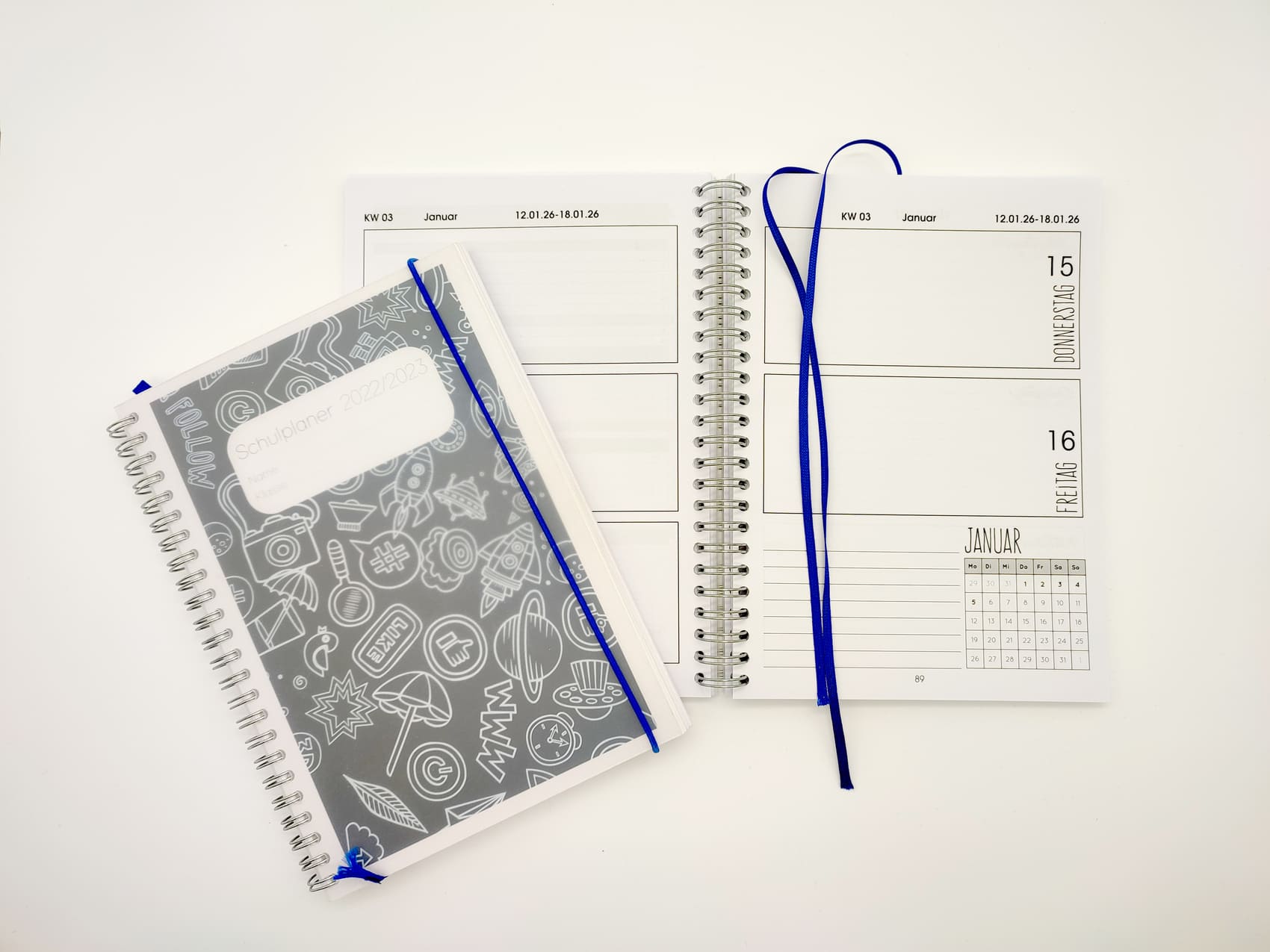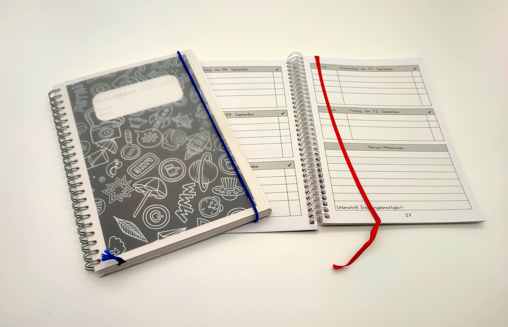 Die Anfertigung der Druckdatei ist für Sie kostenlos. Ob individuelle Gestaltung oder Auswahl aus zahlreichen bewährten Vorlagen – wir setzen Ihre Wünsche passgenau um. Je nach Schulform bieten wir maßgeschneiderte Lösungen, damit Ihr Schulplaner perfekt zu Ihrer Einrichtung passt.